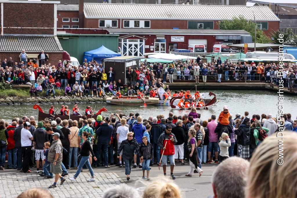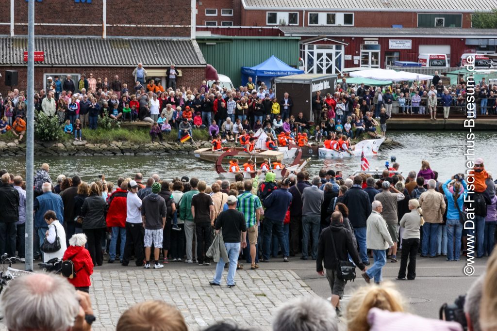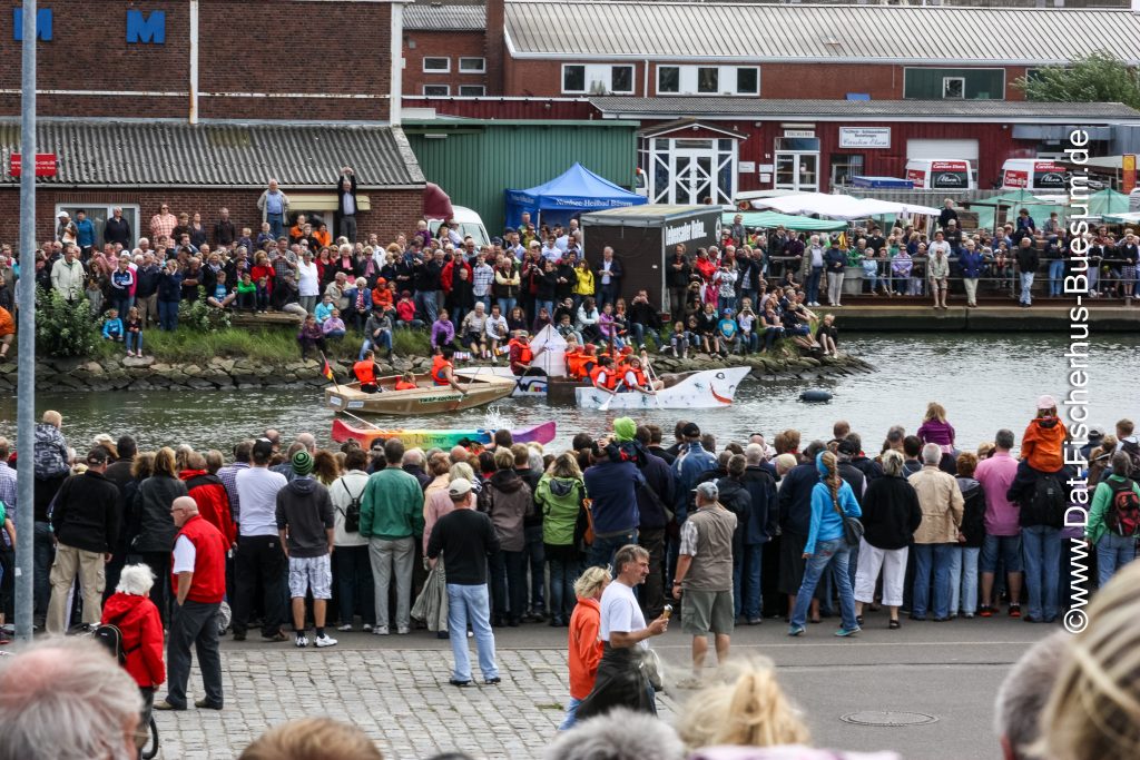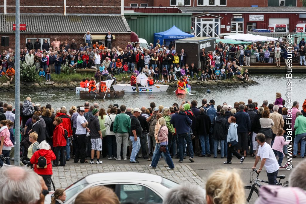 Im Büsumer Hafen an der Bootswerft startete zum 4. Mal das Papierbootrennen.