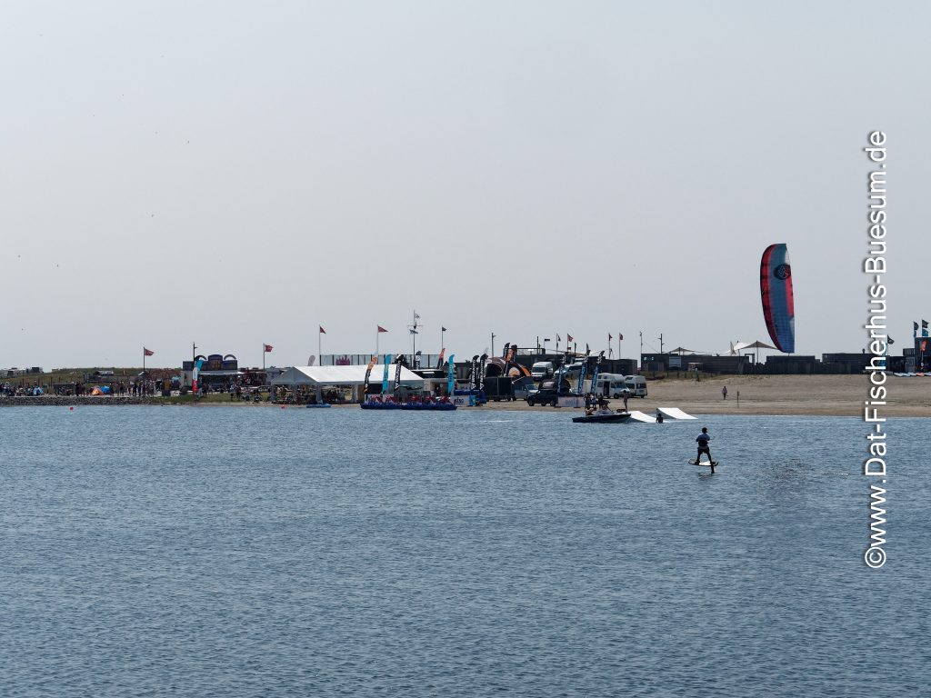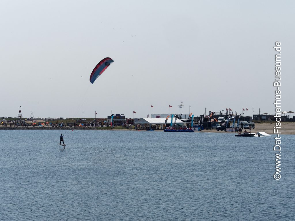 Im Becken am Sandstrand können die Kitesurfer auch bei Ebbe ihre Runden dreht und Übungssprünge probieren.