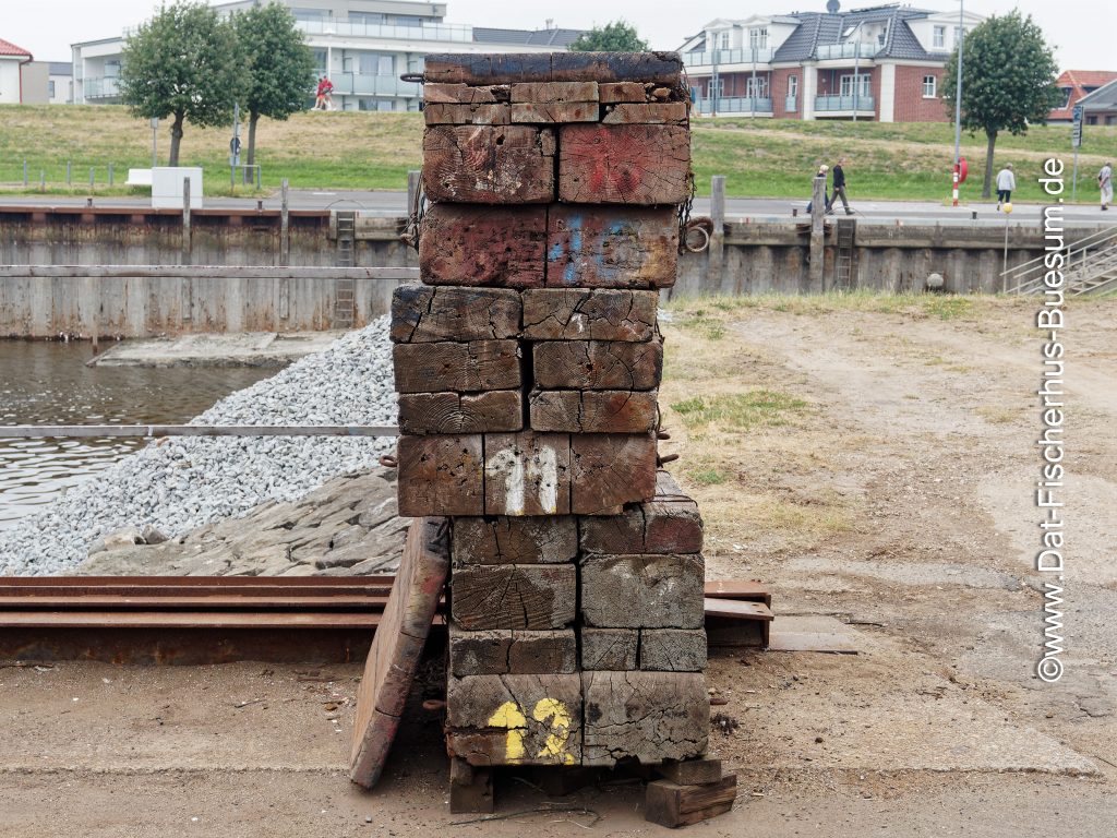 Unterlegholz für die Schiffe auf der Werft im Büsumer Hafen