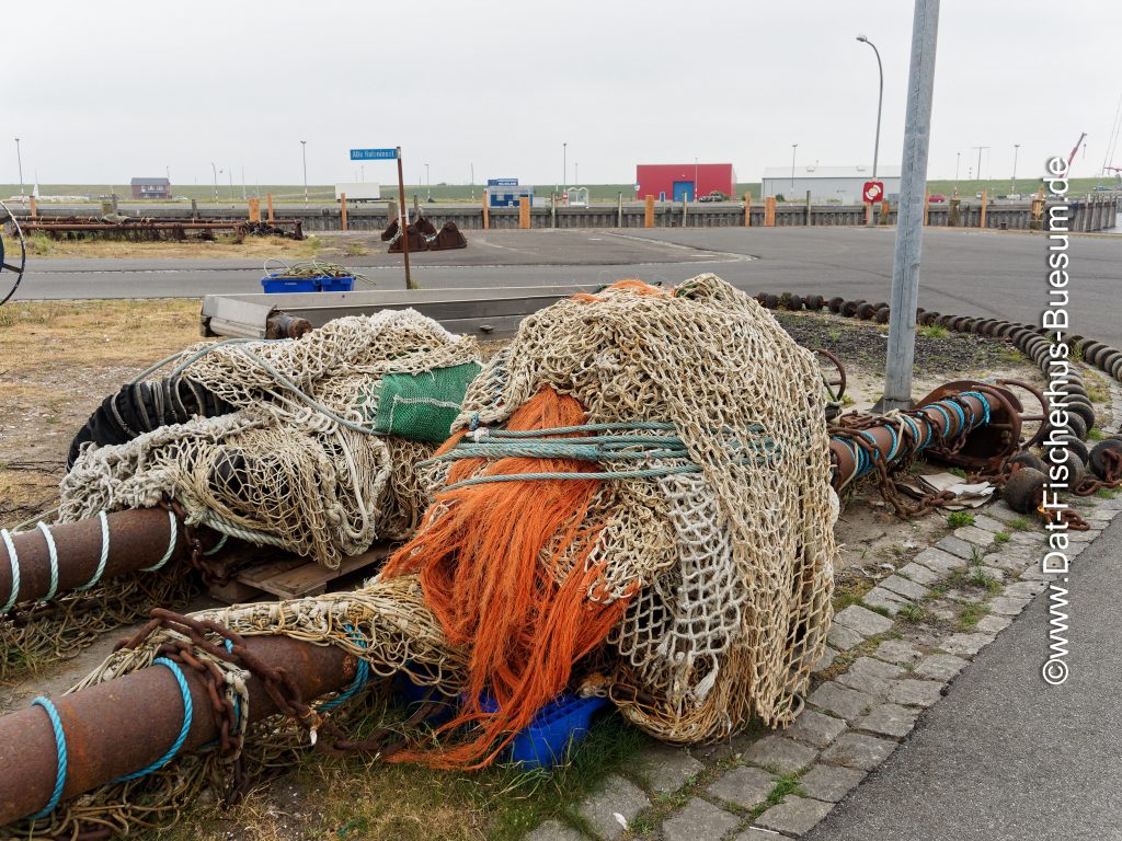 Netzte und Fanggeschirr liegen überall am Hafen. So kann schnell umgerüstet werden, wenn es vom Krabben- auf Schollenfang geht.