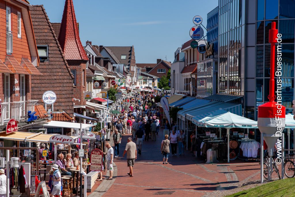 Auch in der Fussgängerzone, der Alleestrasse, ist schon wieder eine Menge los. Allerdings sieht man diese vielen Menschen nur bei schönem Wetter in der Flaniermeile von Büsum.