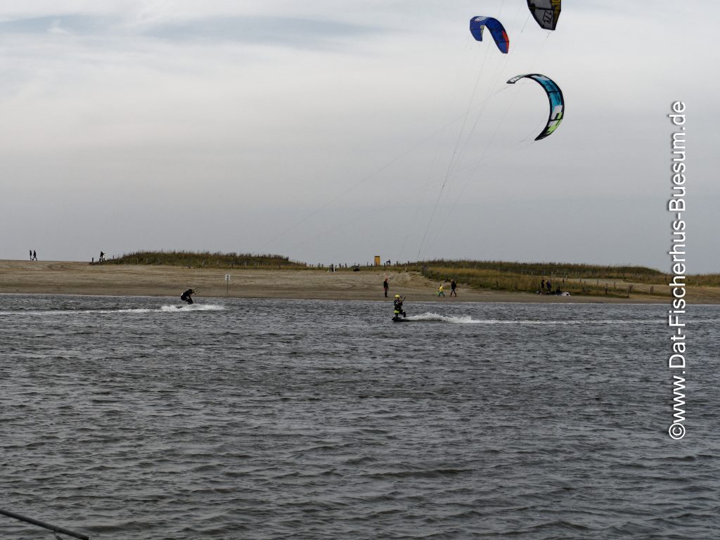 Die Kitesurfer lieben den etwas stärkeren Wind. Trotz der niedrigen Wassertemperaturen sind sie durch die Anzüge geschützt. Auch der Urlauber profitiert von dem Wind. Der Wind verteilt die jodhaltige Luft der Nordsee durch die Wellenbildung viel einfacher an die Küste.