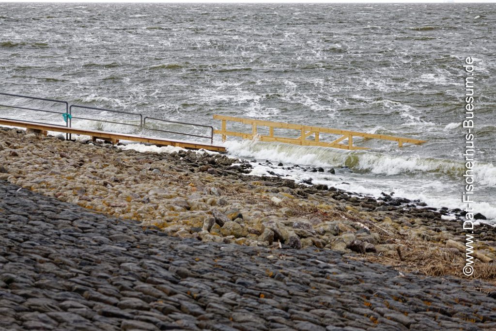 Die Wellen brechen am Strand in Büsum.