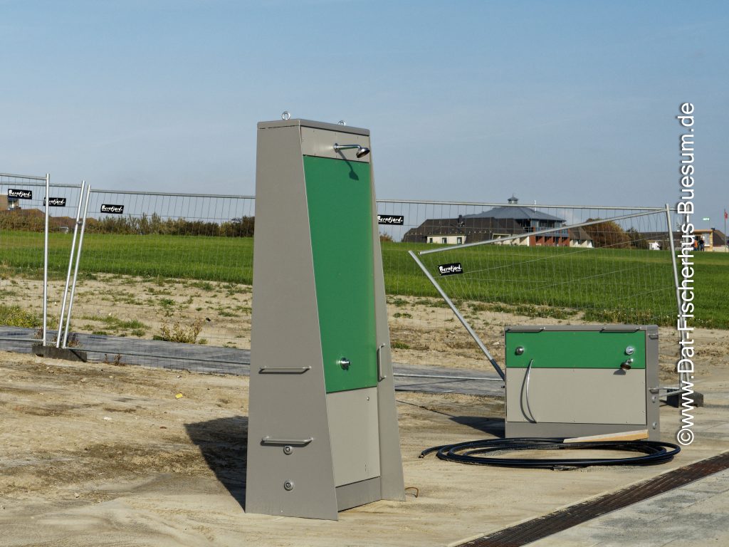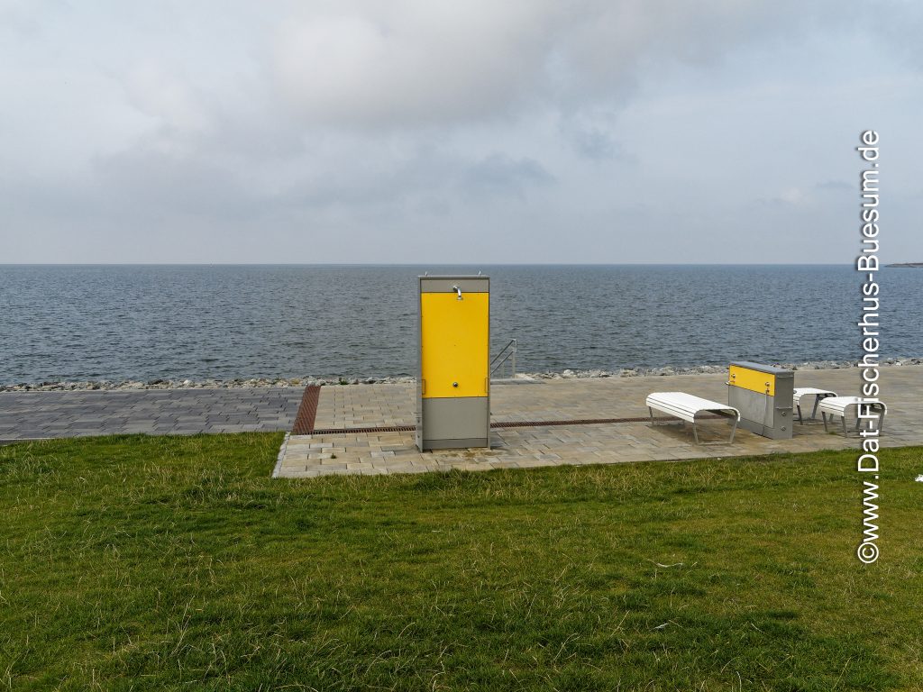 Auch die Duschen haben die Farben des jeweiligen Strandabschnitts.