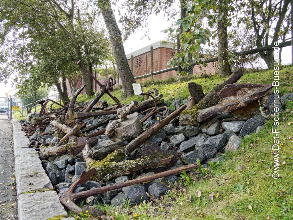 Der Ankerfriedhof. Hier liegen vor Büsum gefundene Anker aus vielen Perioden der Schifffahrt.