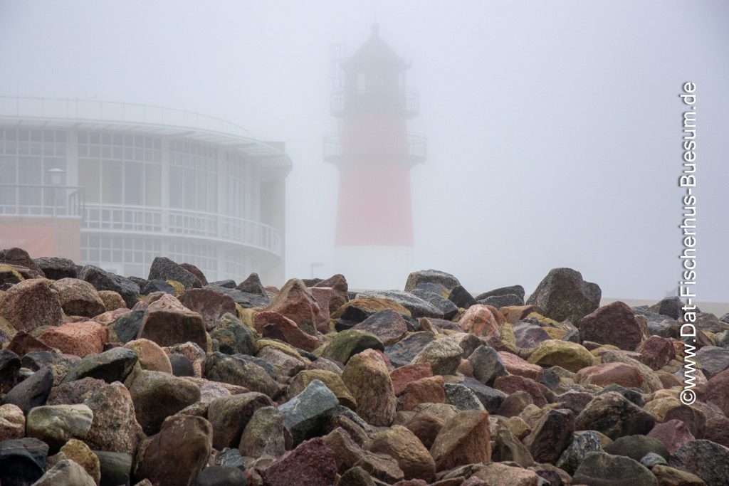 Der Nebel verhüllt den Leuchtturm in Büsum, dabei ist dieses Foto nur vom Watt aus entstanden. Die Entfernung beträgt also nur ca. 50 Meter.