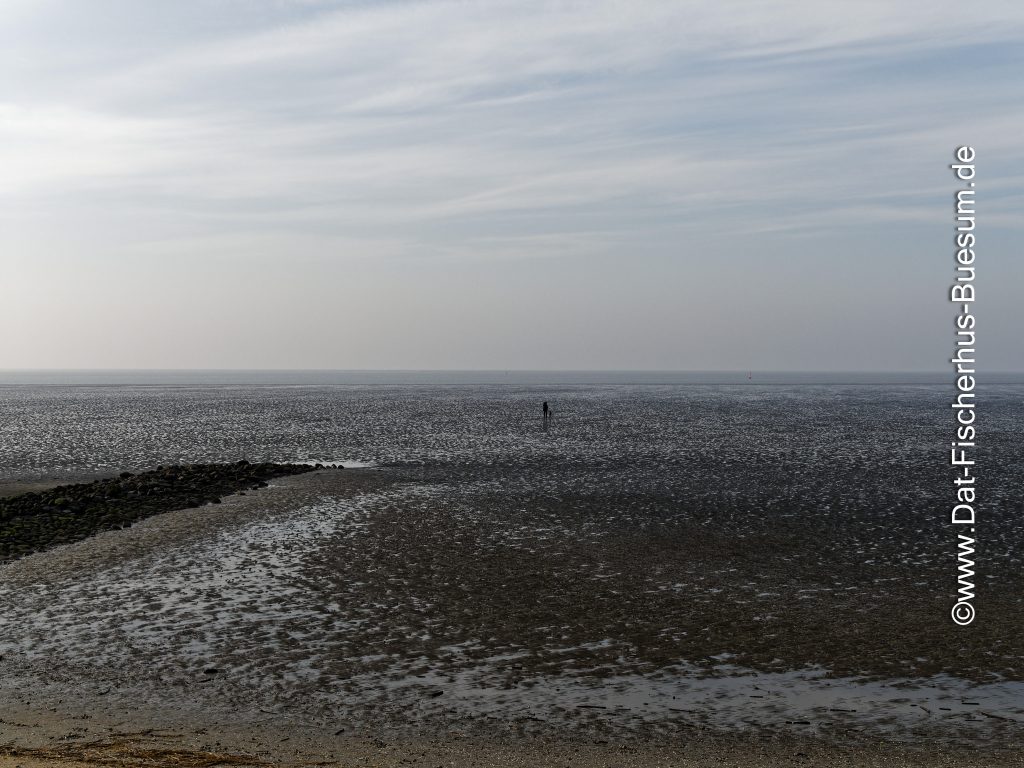 Selbst im Watt sind Spaziergänger unterwegs. In dieser Jahreszeit aber bestimmt mit Gummistiefeln und dicken Socken.