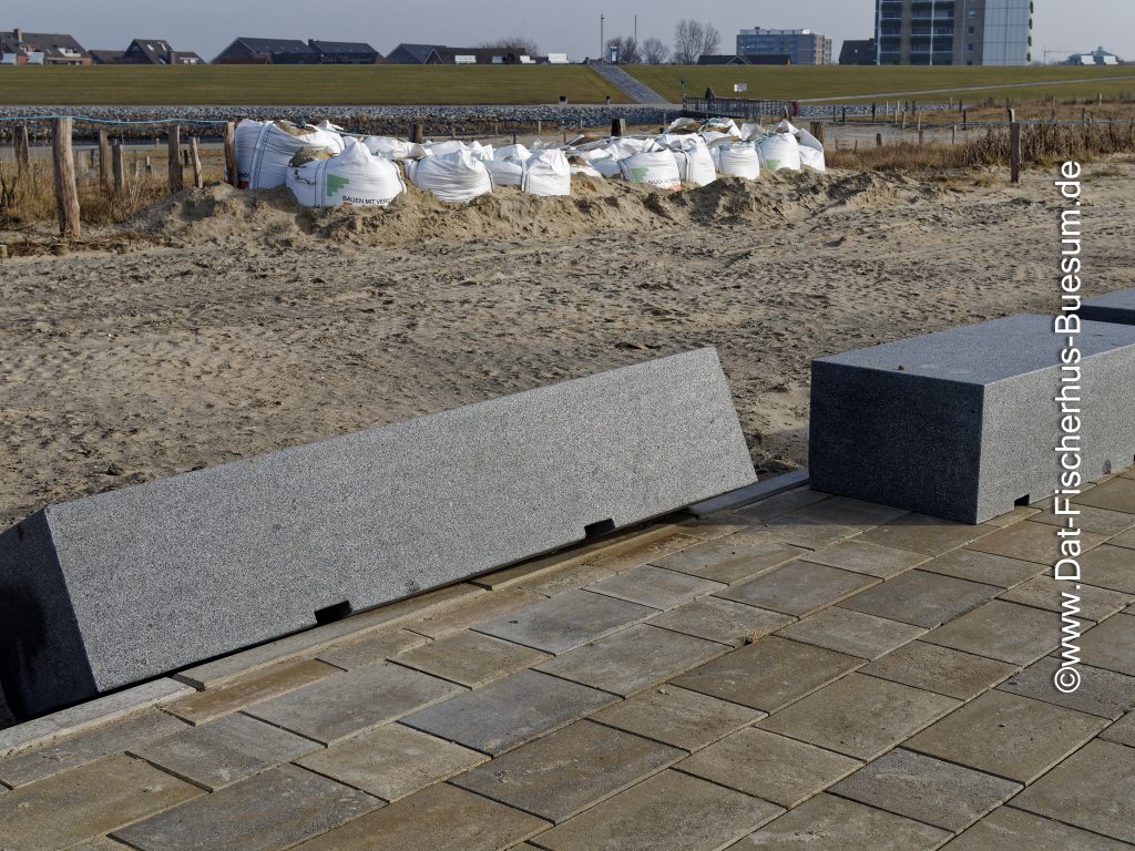 Selbst die schweren Granitblöcke stehen nicht mehr an der Stelle, die gewaltige Kraft der Nordsee hat sie umgerissen.