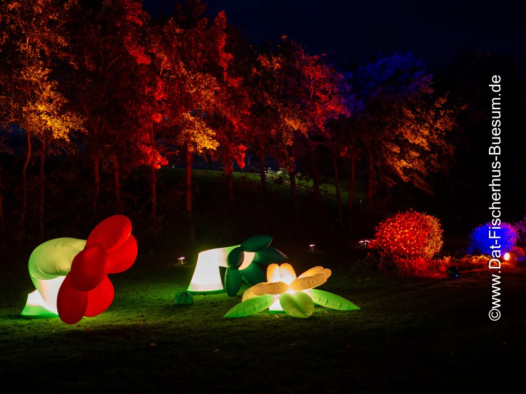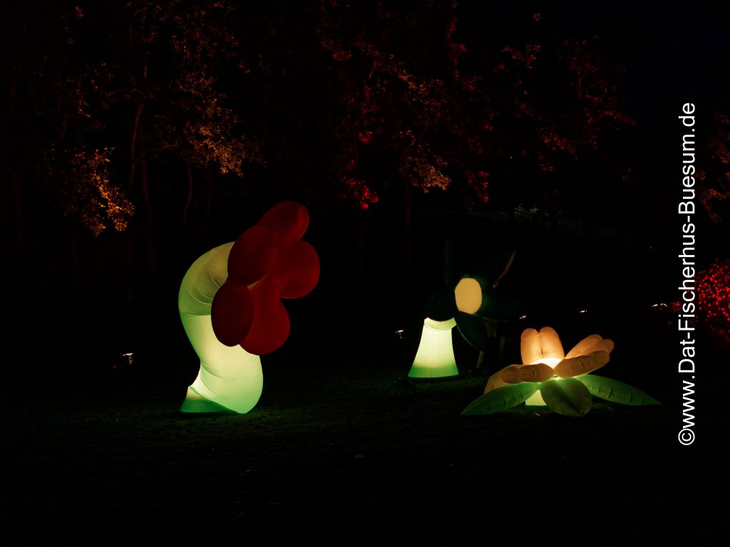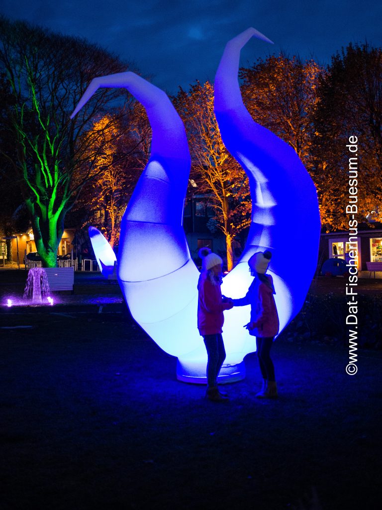 Das ist jetzt die dritte Büsumer Lichterwoche und auch das dritte Mal, dass wir kurz vorbei sehen konnten. Eine ganze Woche werden verschiedene Gebäude und luftbefüllte Skulpturen in verschiedenen Farben illuminiert.