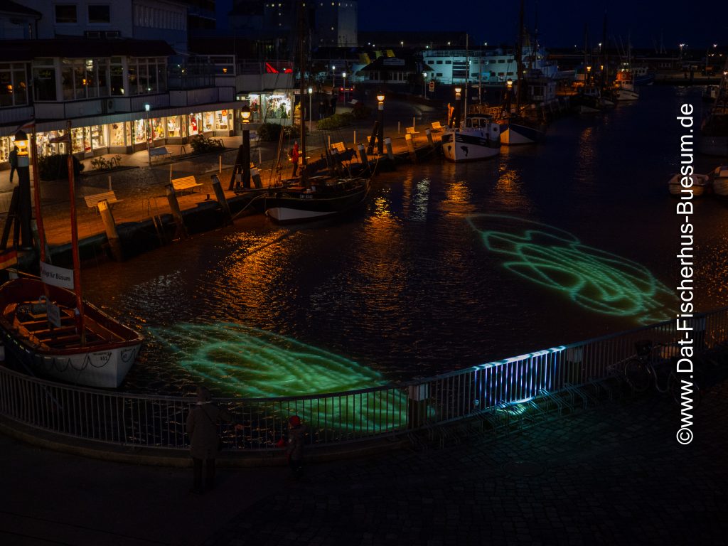 Im Hafenbecken des Museumshafens werden verscheidene Muster gezeigt.