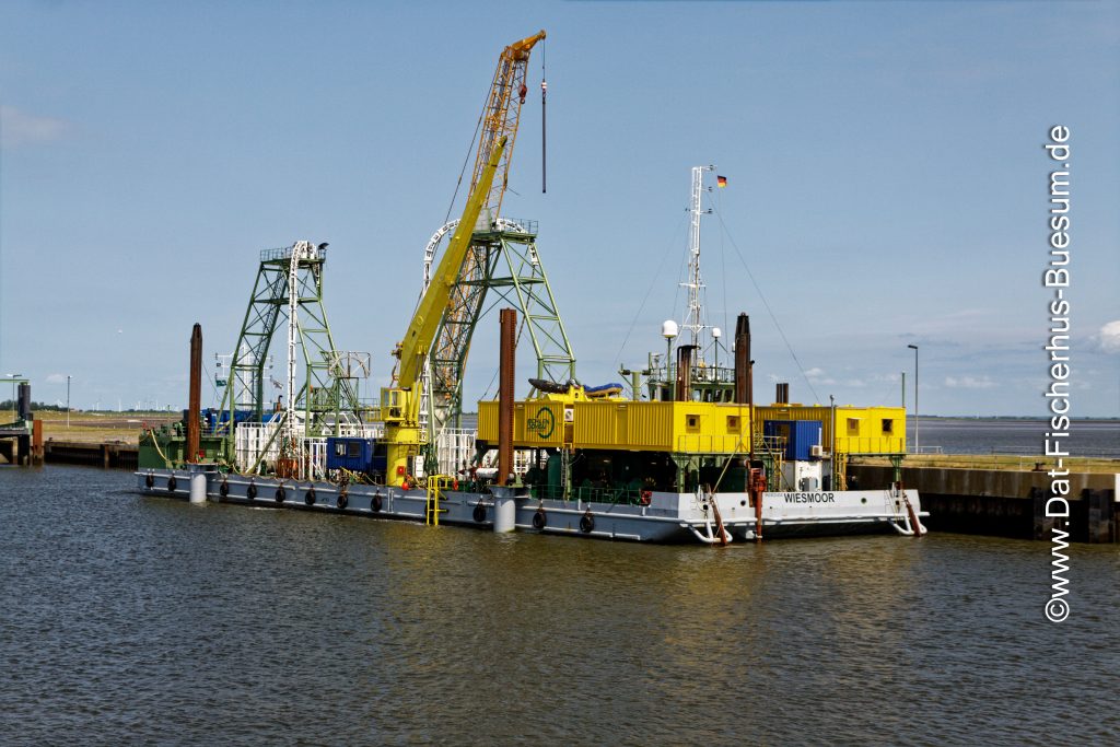 Der Kabelleger für den Windpark vor Sylt liegt in der Büsumer Schleuse