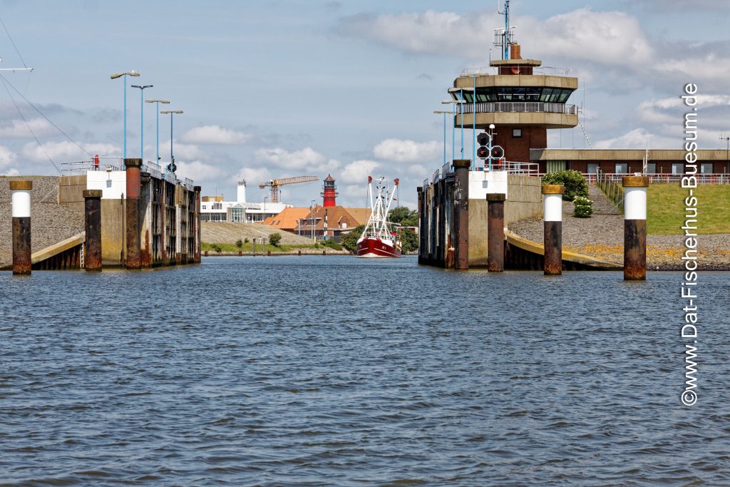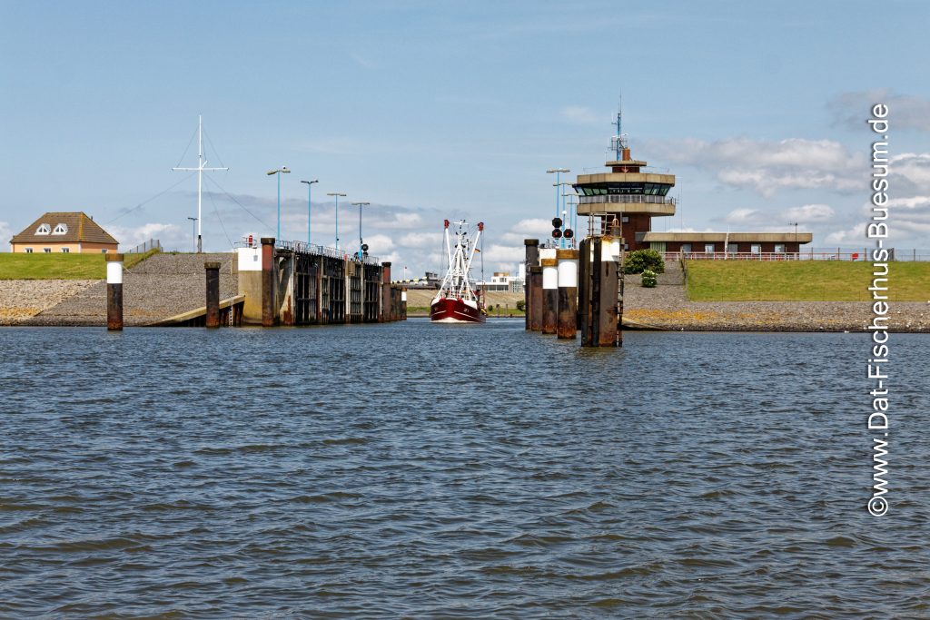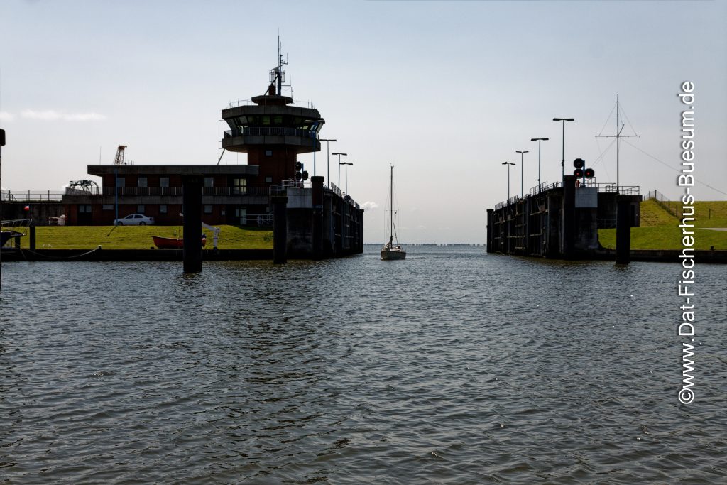 Zurück nach Büsum, wir müssen wegen Gegenverkehr vor der Schleuse warten.