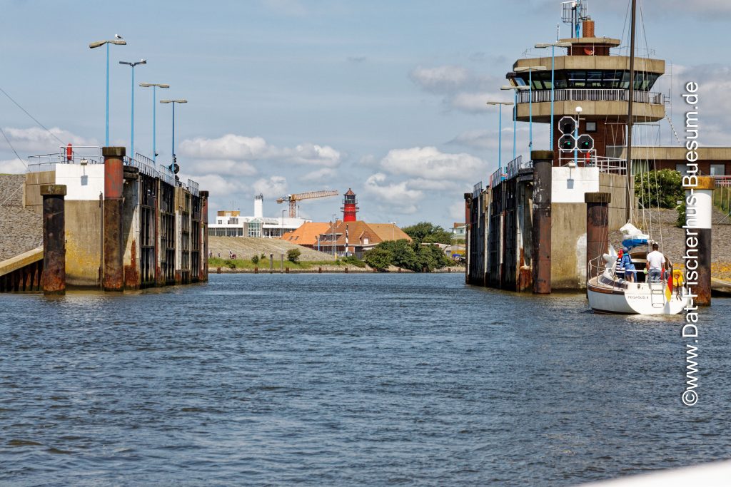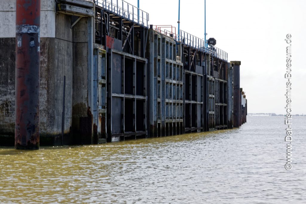 Durch die Schleuse, ein Sperrwerk gegen Sturmfluten und hohe Wasserstände.
