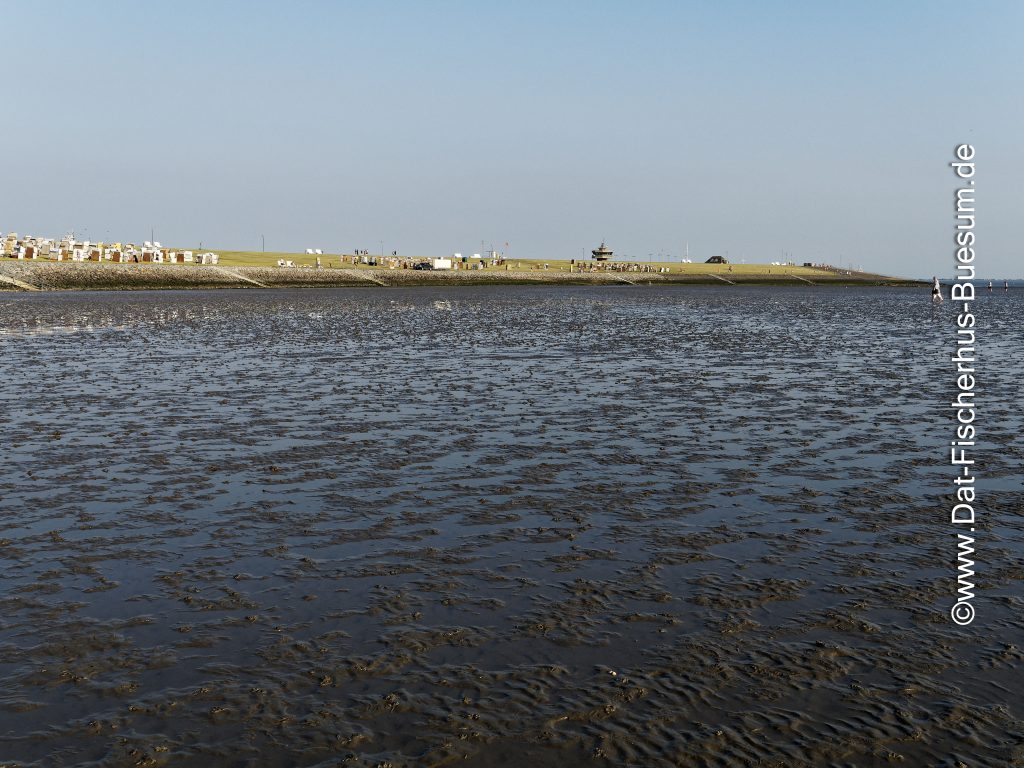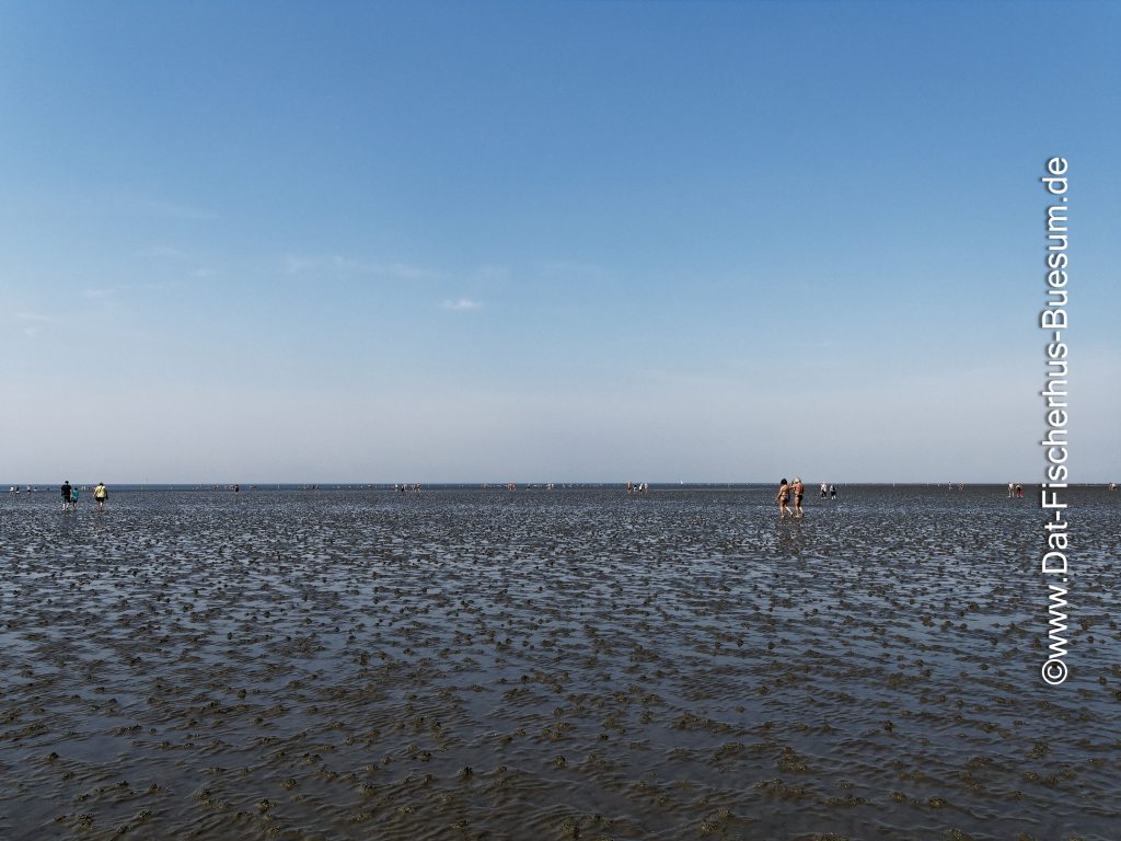 Hier im Watt läßt es sich durch einen etwas kühleren Wind bequem aushalten trotz der heissen Sonne. Man muss nur auf gute Sonnenschutzcreme achten damit es keinen Sonnenbrand gibt.