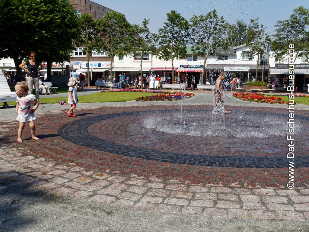 an der Fußgängerstrasse in Büsum ist inzwischen auch umgestaltet. Ein Wasserspiel ist besonders bei den Kindern beliebt.