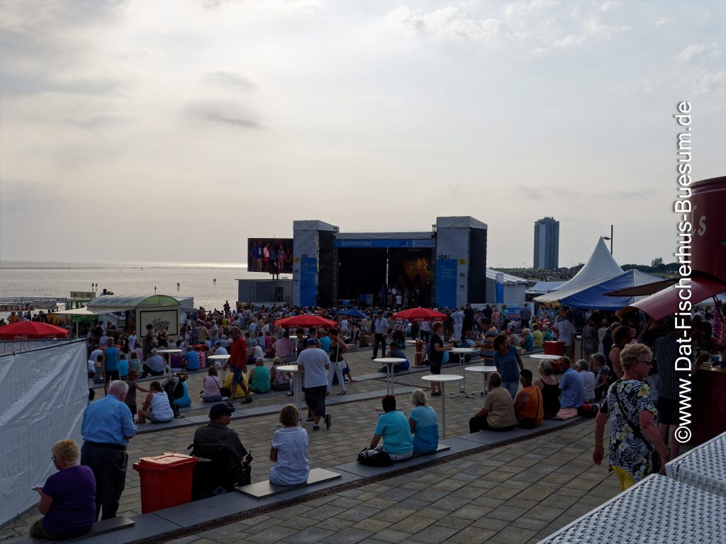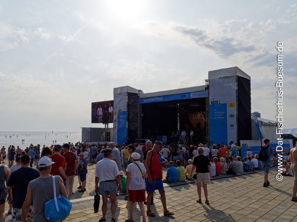 startet diesmal in Büsum. Neben den heißesten Tagen im Juli ist auch wieder ein Großereignis mit der NDR Sommertour in Büsum zu Gast. Die Watt-Tribüne wurde extra für diese Veranstaltung verbreitert und es waren so um 8000-10000 Gäste und Einheimische am Strand in Büsum.