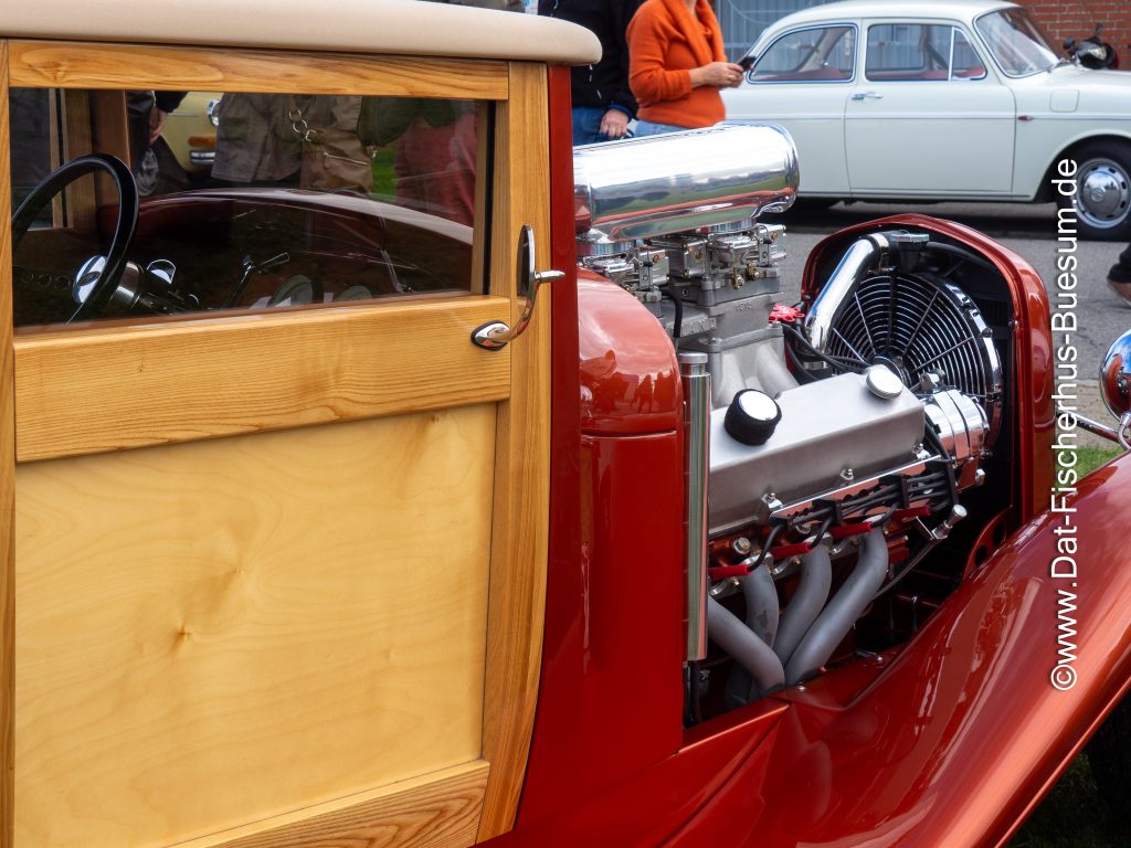 Das Auto mit dem offenliegendem Motor und den Holztüren war wieder vertreten