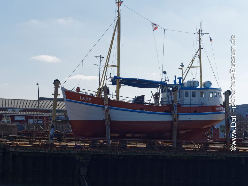 Die „Hauke“ wird auf der Slipanlage im Hafen von Büsum überholt.