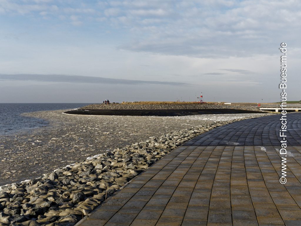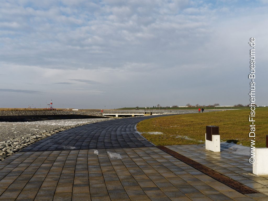Hier ist der Deich und die Strandpromenade noch frei und grün, einige Tage später sieht das schon ganz anders aus.