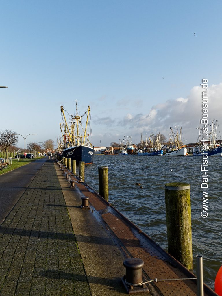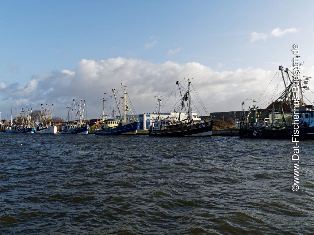Alle Fisch- und Krabbenkutter liegen fest vertäut im Hafen und warten auf ein abflauen des Sturms. Bis dahin werden die Fluttore geschlossen bleiben.