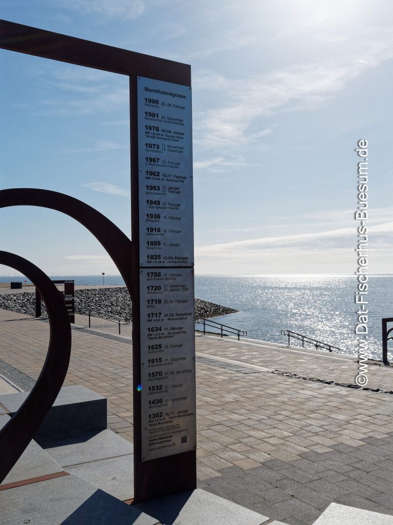 Sturmfluthöhen auf der Skulptur am Sandstrand